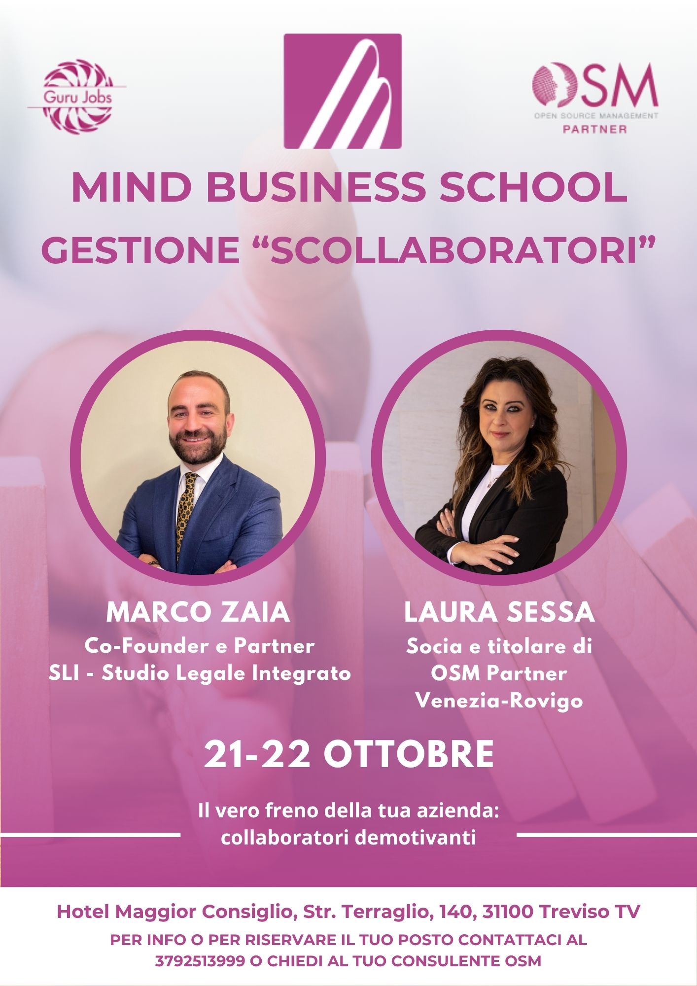 1. Partecipazione GRATUITA a tutti i corsi di OSM come: Time Management, Gestione Finanziaria, Direzione Vendite, Sblocco della Produttività, Recruiting, e tanti altri. Insieme ai tuoi Responsabili dell’Area pertinente al corso scelto!